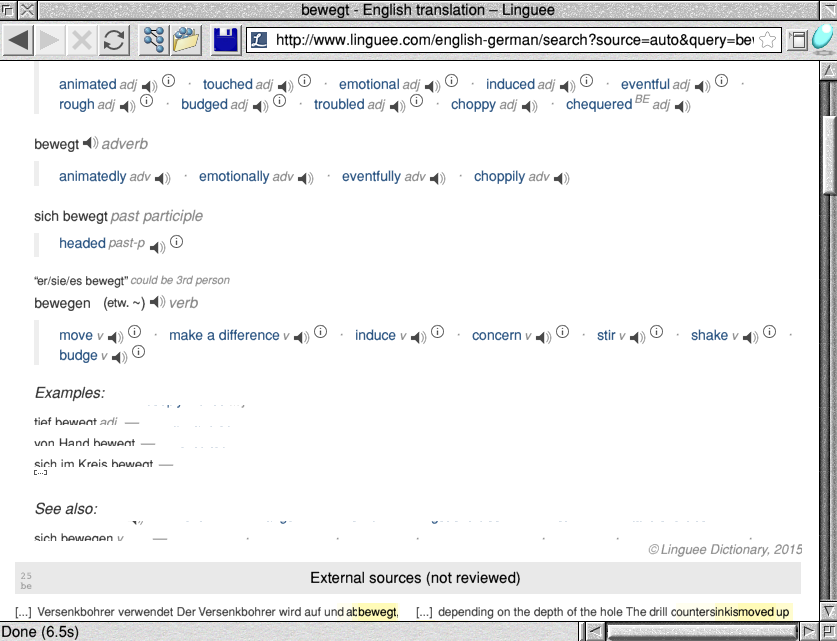 | Steps To Reproduce | Visit http://www.linguee.com/ and enter a search term that produces a valid result: I used "bewegt" (German->English) as an example. | ||||||||||||