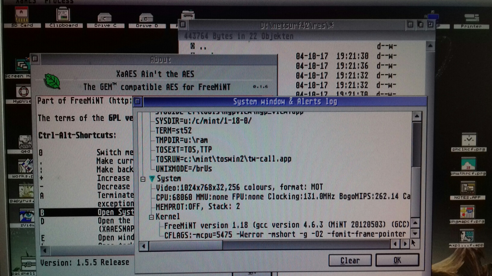 DescriptionHello development team, Greetings from Kiel. I have recently added a Firebee and was thrilled by your version 2.9 Patchlevel 1. So much more I was pleased on your homepage the new Netsurf -m5475-Atari-Mint-gcc-4140 Version and test.