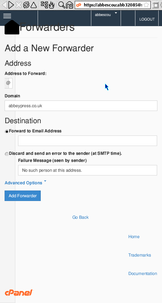 URL of problem pagehttps://username:password@server1.xencentrichosting.uk:2083/frontend/paper_lantern/mail/addfwd.html